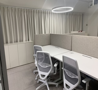 Η κύρια πρόκληση ήταν η κάλυψη μεγάλων υαλοστασίων με συστήματα που εξασφαλίζουν πλήρη έλεγχο του φωτός, διατηρώντας την αρχιτεκτονική καθαρότητα του χώρου. Απαιτήθηκε η ενσωμάτωση wireless αυτοματισμών στο Meeting Room για ένα απόλυτα minimal αποτέλεσμα χωρίς καλωδιώσεις, καθώς και ο συνδυασμός ηλεκτροκίνητων blackout συστημάτων με ειδική χειροποίητη ραφή. Η απόλυτη ακρίβεια στην τοποθέτηση ήταν καθοριστική για την άψογη κίνηση και την αισθητική ομοιομορφία σε όλο το project.